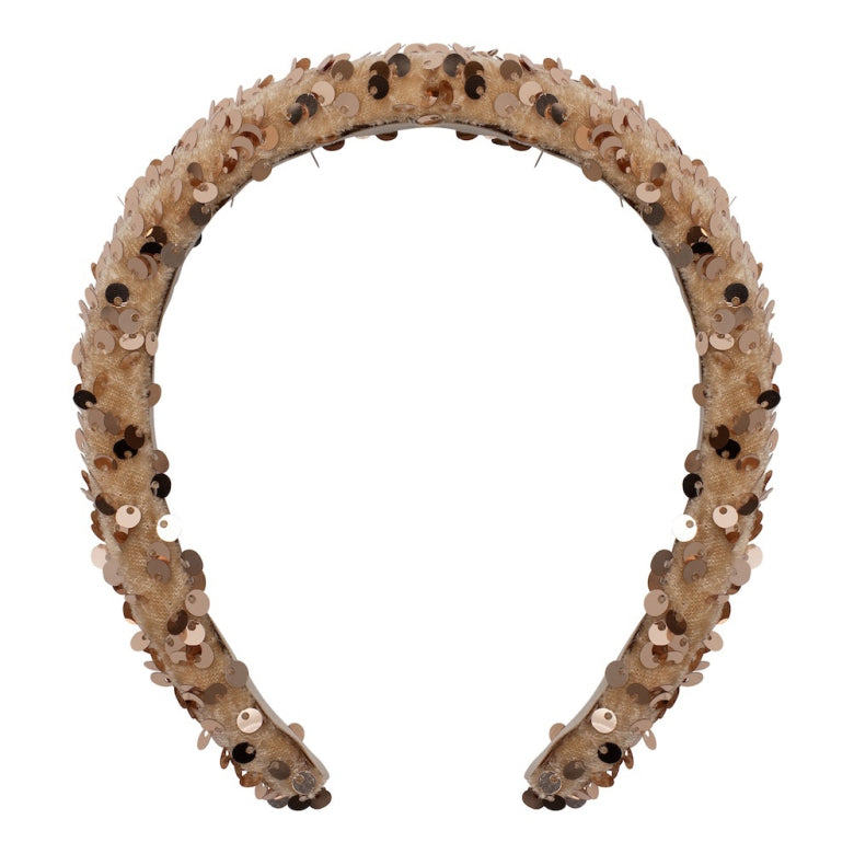 Our sparkly new Sequin alice is the perfect piece to brighten up their outfit this celebration season! Enviably eye-catching, comfy and simple to style... what's not to love! Fabric covered alice band adorned with gold sequins Sized to fit ages 3-10 years